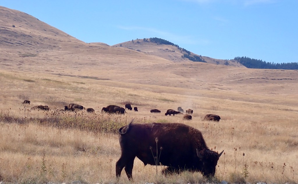 - This park is south of Flathead Lake, next to a wildlife preserve. It’s mainly a self-tour with lots of bison minding their own business, grazing along the hills and roadsides. It’s very easy to see the bison herds and the deer, including pronghorn, muledeer, and whitetail.