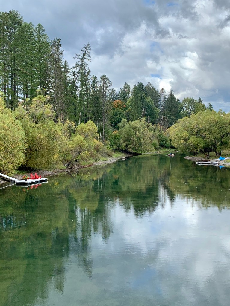 - About 50 minutes north of Whitefish is Eureka. There is one road to get there and it’s a gorgeous drive. Very few cars travel along it and massive evergreens line the entire trip with hidden lakes that shimmer continuously. Eureka is pretty active, but as you head out of town toward the border which is only a few miles away, it starts to feel like this eerie ghost town. The border looks abandoned and there was not one car or truck in line to cross.